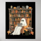 Womens Bookish Ghost Haunted Library Cat Bookworm Poster