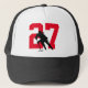 Women's Custom Hockey Player Number Black and Red Trucker Hat