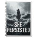 A striking black-and-white wall art print featuring the silhouette of a woman standing strong amid turbulent waves. With her hair blowing in the wind and posture upright, she faces the storm with unwavering resolve. Bold typography beneath her reads: "SHE PERSISTED", symbolising strength, endurance, and courage in the face of adversity. The dramatic seascape emphasises the power of inner strength and resilience, making this piece a bold statement for empowerment.