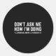 Womens Don't Ask Me How I'm Doing We'll Regret It Classic Round Sticker