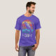 I give wanted to give this a 4 instead of a 5 because these Basic DARK T0shirts run unexpectedly SLIM or Narrow. Which is great if you do not have a potbelly, but I have a paunch. It isn't the shirt's fault that I've got a beer belly. The design and shirt itself is a quality cotton shirt. The color is more of a deep purple, but still a very pretty color. The Basic DARK T-shirts run a bit SLIMMER than the Basic Ts. The neck is a fraction narrower (or seems to be narrower) also. I'm a paunchy middle-aged woman and my neck is 12 inches (31cm) thick and the neckline fell about the same as in the photo of the man, and I had the desire to tug it a bit. So if you're a thick necked man or like loose shirts, be aware these are slimmer shirts. Once I get rid of my lockdown paunch it'll look great. The shirt washed well in cold water with no apparent bleeding. We don't have a dryer, so it hung dry. Did not shrink. Love the colors and the design. The design looks smaller on my shirt than it does on the model on-line. But still, it looks good on the shirt. The printing looks as it does on the model, just the size seems fractionally smaller. Washed garment in cold water, hung dry and design appeared unaffected.
