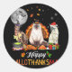 Womens Fall Autumn Cute Cat Halloween Thanksgiving Classic Round Sticker