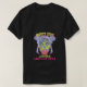 I give wanted to give this a 4 instead of a 5 because these Basic DARK T0shirts run unexpectedly SLIM or Narrow. Which is great if you do not have a potbelly, but I have a paunch. It isn't the shirt's fault that I've got a beer belly. The design and shirt itself is a quality cotton shirt. The color is more of a deep purple, but still a very pretty color. The Basic DARK T-shirts run a bit SLIMMER than the Basic Ts. The neck is a fraction narrower (or seems to be narrower) also. I'm a paunchy middle-aged woman and my neck is 12 inches (31cm) thick and the neckline fell about the same as in the photo of the man, and I had the desire to tug it a bit. So if you're a thick necked man or like loose shirts, be aware these are slimmer shirts. Once I get rid of my lockdown paunch it'll look great. The shirt washed well in cold water with no apparent bleeding. We don't have a dryer, so it hung dry. Did not shrink. Love the colors and the design. The design looks smaller on my shirt than it does on the model on-line. But still, it looks good on the shirt. The printing looks as it does on the model, just the size seems fractionally smaller. Washed garment in cold water, hung dry and design appeared unaffected.
