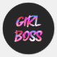 Womens Girl Boss V-neck Classic Round Sticker