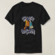 I give wanted to give this a 4 instead of a 5 because these Basic DARK T0shirts run unexpectedly SLIM or Narrow. Which is great if you do not have a potbelly, but I have a paunch. It isn't the shirt's fault that I've got a beer belly. The design and shirt itself is a quality cotton shirt. The color is more of a deep purple, but still a very pretty color. The Basic DARK T-shirts run a bit SLIMMER than the Basic Ts. The neck is a fraction narrower (or seems to be narrower) also. I'm a paunchy middle-aged woman and my neck is 12 inches (31cm) thick and the neckline fell about the same as in the photo of the man, and I had the desire to tug it a bit. So if you're a thick necked man or like loose shirts, be aware these are slimmer shirts. Once I get rid of my lockdown paunch it'll look great. The shirt washed well in cold water with no apparent bleeding. We don't have a dryer, so it hung dry. Did not shrink. Love the colors and the design. The design looks smaller on my shirt than it does on the model on-line. But still, it looks good on the shirt. The printing looks as it does on the model, just the size seems fractionally smaller. Washed garment in cold water, hung dry and design appeared unaffected.