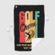 Buy this retro-coloured Women's GOLF QUEEN Custom Name Women's Golf Towel with CUSTOMIZABLE TEXT, designed for women golfers. The artwork shows bold typography spelling GOLF with columns of retro colours. The word QUEEN is written in a script font with a crown and there is a black silhouette of a woman giving a golf swing. This Women's Golf Queen Golf Towel would make a great golfing accessory for your golfer friends when going around the green. Using this Golf Queen Golf Towel won't improve your golf swing, help you to break par, or even avoid bogeys BUT it'll add some much needed fun and colour. Buy these women's Golf Towels for your next day out or for your golf-themed bachelorette party or to use at golf tournaments throughout the golf season. Matching items available. Comes in vibrant colour version.