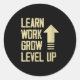 Womens Learn Work Grow Level Up Growth Success Vin Classic Round Sticker