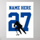 Female hockey player. Personalised Hockey Player Number Blue hockey poster. Enter name and number to customise.