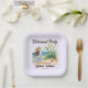 Invite loved ones to honour her achievements with a women's retirement party by the beach! This stunning watercolor paper plate showcases a tranquil beach dune with elegant yellow flowers and a woman sitting enjoying the breeze of freedom. "Retirement Party" is beautifully scripted, complemented by customisable party details in a classic serif font. Make her special day unforgettable—personalise and order your plates now!