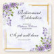 Transform your retirement celebration into a stunning event with our elegant female-themed coaster. The soft light blue background adorned with delicate purple watercolor flower bouquets and a modern golden border creates a sophisticated ambiance. The words "Retirement Celebration" are elegantly scripted, with customisable details in a classic serif font. Perfect for honouring a esteemed female employee. Click now to customise and order!