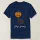 Womens Scary Halloween stay spooky engraved pumpkin cat T-Shirt .