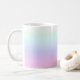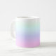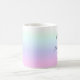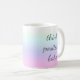 This beautiful women's tea or coffee mug says "Think positive babe" and it has a beautiful pink, purple and blue graduating colour all over.