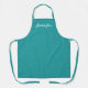 Show your style while cooking with this Womens Turquoise Teal Script Personalised Chef Apron. Name is designed in elegant white script centred on front of solid turquoise apron. Great for protecting clothing from stains and spills while in the cooking. Available in different colours.