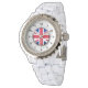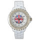 Women's UK Flag Rhinestone White Enamel Watch