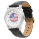 Women's Classic Black Leather Strap Watch USA Flag