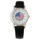 Women's USA Flag Classic Black Leather Strap Watch