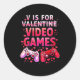 Women's V Is For Video Games Funny Valentines Game Classic Round Sticker