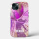 Girl's volleyball iPhone case with colourful girly volleyball graphics in pink, purple and gold and female volleyball player jumping at the net with customisable name by katz_d_zynes ::: also available for other iPhone models as well as iPad and Samsung devices ... for other devices, select your device type from the “Style Options” section on this page … for customisation assistance, simply click the “Ask this Designer” link below