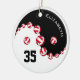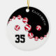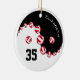 This yin and yang volleyball ornament features a conceptual black and white yin and yang symbol with volleyballs aligned between the two elements - customise the colour of the non-white volleyball panels to any colour you'd like, shown here in bright red - her name, jersey number and Christmas year are customisable - by katz_d_zynes