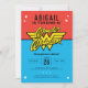 Celebrate your child's superhero birthday with these classic blue and red Wonder Woman birthday invitations. Personalise by adding your party details!