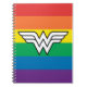 DC Pride | Wonder Woman's iconic logo with layers of rainbow colors inside it.