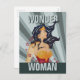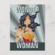 This vintage sunburst graphic of Wonder Woman features her side face profile as she looks off to the right.
