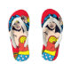The flip flops arrived in a most colorful package which also had them double bagged in a black drawstring pouch which makes them great for gifting. They are a quality product with plenty of durability. The printing is vivid and true to that pictured on the web. Great look!