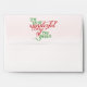 Wonderful Christmas holiday design envelopes with typography text of red and green that reads The Most Wonderful Time of the Year, also features some pretty red snowflakes inside the flap!
