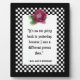 Whimsical digital art features a black and white chequerboard border frame, purple watercolor flower at top and centre quote from Alice in Wonderland, which reads " It's no use going back to yesterday, because I was a different person then."