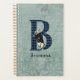Whimsical design for Alice in Wonderland lovers of all ages features capital letter / initial B with black and blue harlequin fill and original White Rabbit illustration that has been tinted, on a distressed vintage floral and handwriting blue tinted background. Personalise with name or other message