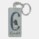 Whimsical design for Alice in Wonderland lovers of all ages features capital letter / initial C with black and blue harlequin fill and original White Rabbit illustration that has been tinted, on a distressed vintage floral and handwriting blue tinted background.