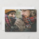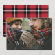 Wonders of his love plaid photo Christmas card. Gold effect script text.