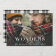 Wonders of his love plaid photo Christmas card. Gold effect script text. Tartan check background colour can be altered. Modern classy elegant christian religious design.