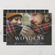 Wonders of his love plaid photo Christmas card. Gold effect script text. Tartan check background colour can be altered. Modern classy elegant christian religious design.