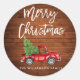 Rustic Wood - Brush Script Watercolor Red Vintage Truck with Christmas Tree - Merry Christmas Family Name Envelope Seal