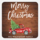 Rustic Wood - Brush Script - Watercolor Red Vintage Truck with Christmas Tree - Merry Christmas Family Name Envelope Seal - Green