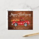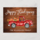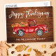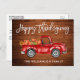 Rustic Wood - Brush Script Watercolor Vintage Red Truck with Pumpkins and Autumn Leaves - Happy Thanksgiving Postcard