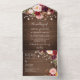 Wood Burgundy Floral Lights Rustic Wedding All In One Invitation