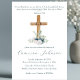 Wood Cross White and Blue Flowers Baptism Invitation