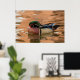 Wood duck swimming in water poster