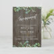 This suite's distinction is due to the elaborate, swirling script font used for key phrases, watercolor eucalyptus border accents over a rustic brown wooden board image. If you need to notify your tribe of an updated wedding date, this could be the card for you. In this piece, the calligraphy font was used to create a graphic that reads "Announcement". Use the template fields to add your personal details and make this pretty design your own. // 119 //