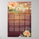 12+ Tables Wedding Seating Chart Poster Templates - Elegant Script with Peach White Roses Floral and String Lights on Rustic Wood Background.