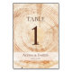 The design of the table numbers features a printed wood tree ring background, reminiscent of the natural beauty of rustic settings. The brown typography stands out against the wood grain, ensuring that the numbers are easily visible and readable.