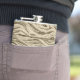 This flask has Kristie Hubler's art, "Wood Grain Board Planks", with the grain of French oak wine barrels, horizontal layout, in the colour family that goes with html code #312000, in a light taupe colour family. The grain was inspired by the grain in French oak, used for wine barrels.