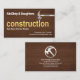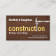 An exquisite timber wood grain cover features a creative gold "construction" signage near the centre of the card. ; The letter-i to the word "construction" is replaced with a silver hammer and nail design. Just beside the silver hammer at the top lies your prestigious name with a slogan option to publicise your services, below the gold "construction" signage. At the lower right corner you have the contact details.