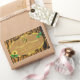 Make a lasting impression with this elegant and modern product label design featuring a brown coloured wood grain and natural tree bark with a pretty golden frame and cute green butterflies.