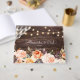 Carry your theme throughout your wedding with this wood, lace, string lights, and blush & peach floral touch to your wedding guest book.