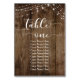 This rustic, elegant wedding and event invitation suite of designs presents some popular wedding design trends combined in a fresh way. With a rich brown wood background and dual strings of twinkling light accents, I've combined a beautiful modern script font to render graphics depicting key words and phrases in the design set. In this table card, the "fancy type" reads "table one". A template field enables you to list the table guest's name. This collection is ideal for a country or casual post-wedding reception or celebration event. All layers are unlocked to allow you as much control as you desire. // 19 //