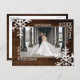 Customize this photo card with a wedding photo or a photo of you and your new husband or wife enjoying life together. This card features distressed snowflakes and typewriter font.