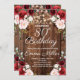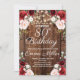 Wood Rustic Burgundy Floral Surprise 80th Birthday Invitation